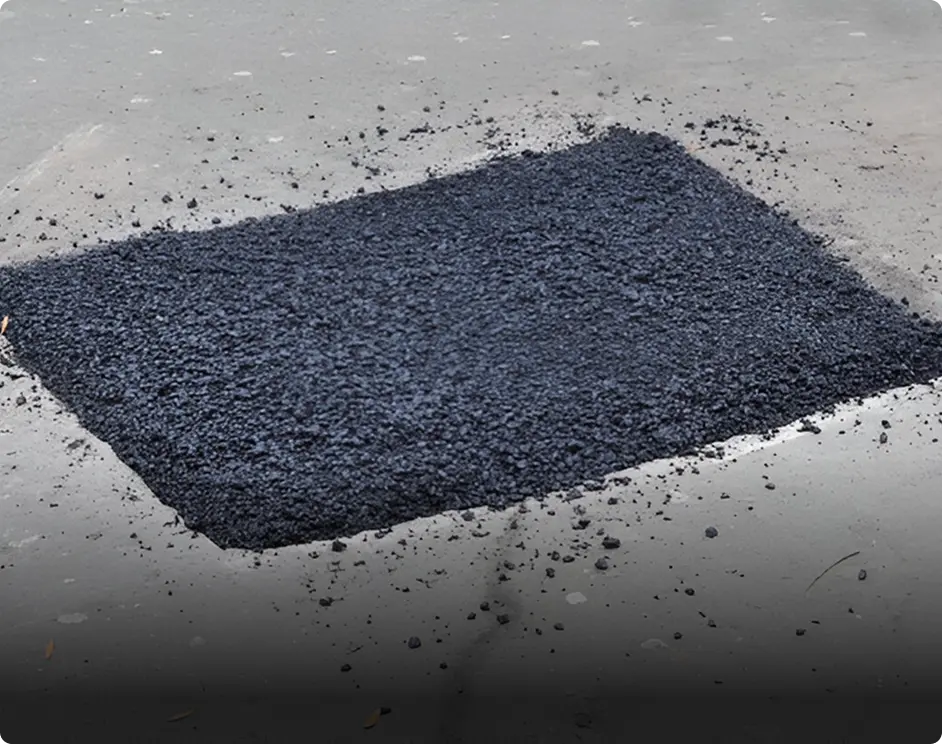 We prepare the area by cleaning debris, loose asphalt, and damaged material to ensure proper adhesion and a flawless finish.